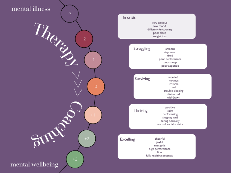 Therapeutic coaching is a mid-way approach provided by a trained professional, which blends the problem-solving focus of coaching with a deeper, therapeutic approach.
